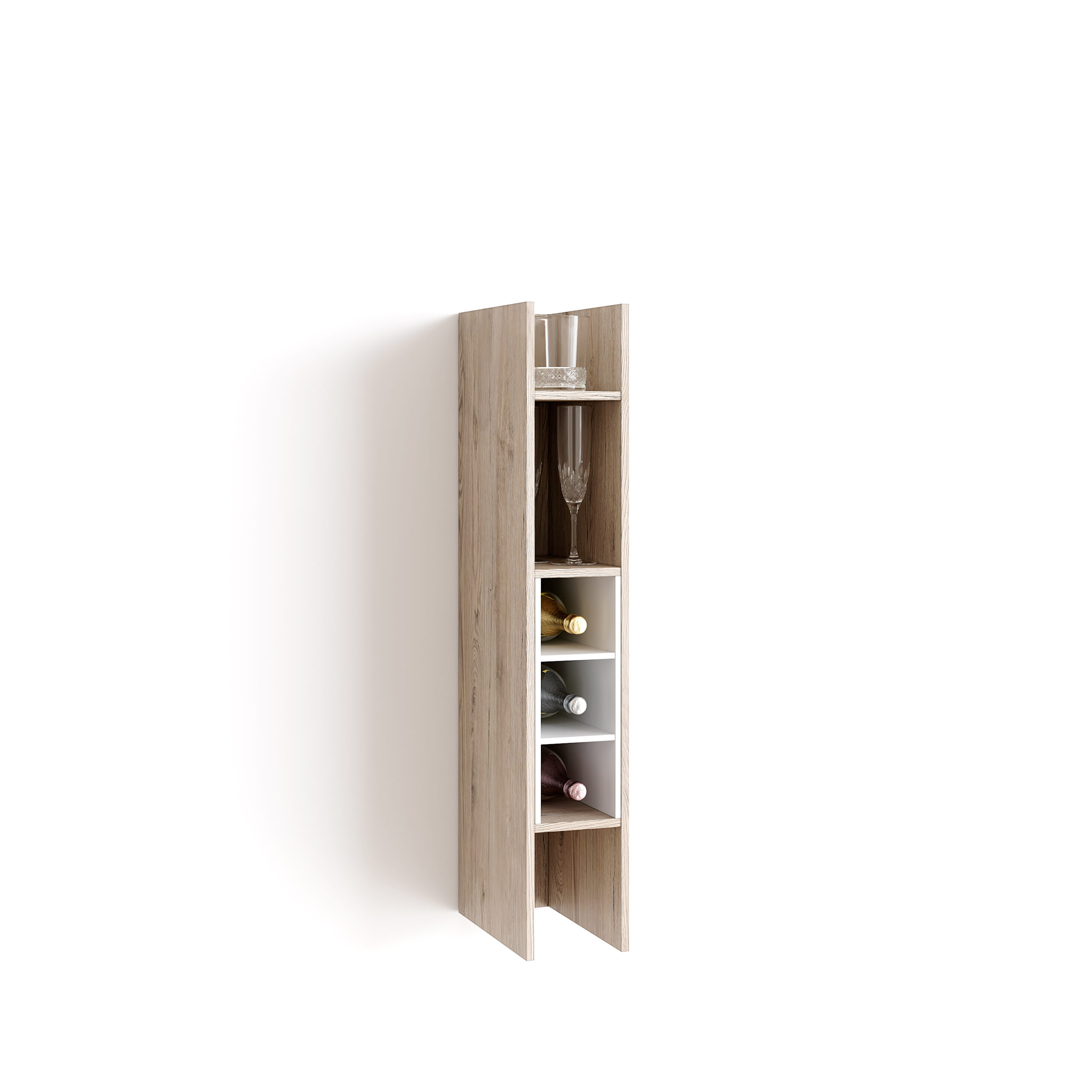 Il pensile K-ivy cm 15,2 x h.90 si trasforma in un perfetto portabottiglie, grazie all’accessorio apposito da inserire nel vano più grande.